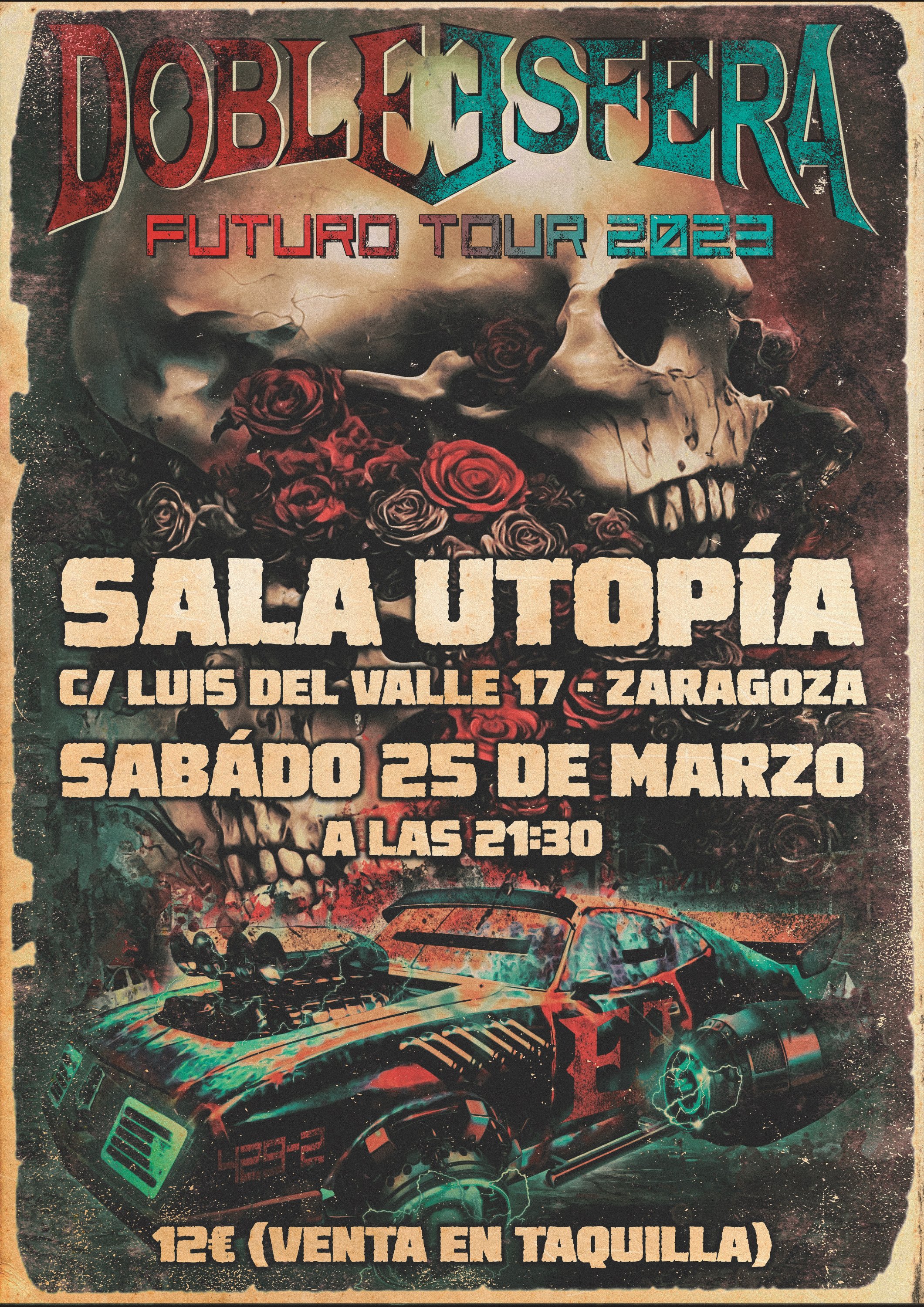 Doble Esfera continua en Zaragoza el “Futuro Tour 2023”, que recorrerá gran parte de España descargando su potente Rock Duro del S.XXI. El grupo llega a la capital maña para presentar sus dos nuevos singles, Maxi y El Exterminador, cantados por Rox Robles, que se incorpora como voz femenina para formar un poderoso dúo de vocalistas junto a Eladio Ruipérez. Además, el combo murciano seguirá desgranando su álbum “Futuro”, publicado justo antes de la pandemia.