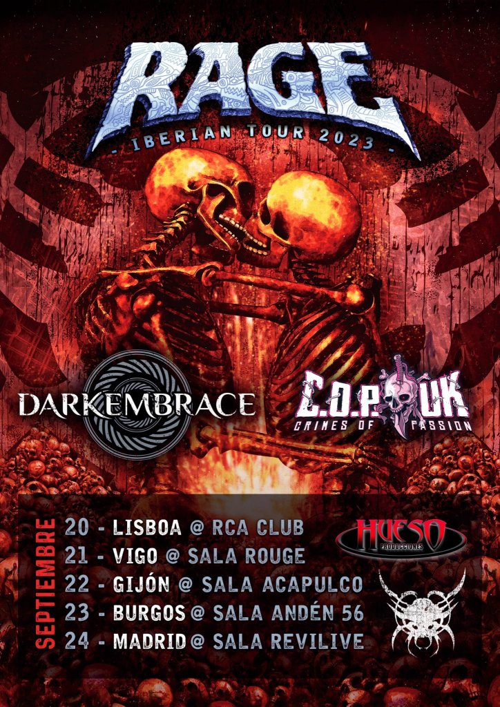 Para esta ocasión, con unos invitados muy especiales, como son los gallegos Dark Embrace, que tras publicar su tercer disco «Dark Heavy Metal» el mes pasado, y estar recibiendo grandísimos elógios por parte de la prensa especializada, junto a grandes críticas por los «metalheads» de todo el planeta. Serán los acompañantes principales de Rage y presentará su aclamado nuevo disco por cinco ciudades ibéricas.