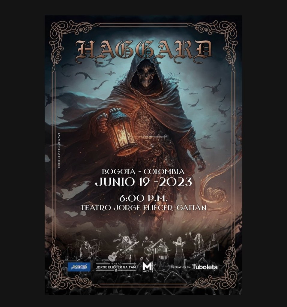 La espera ha terminado, después de 14 años desde su presentación en Rock Al Parque y 3 años desde su última presentación en Bogotá; la banda alemana Haggard llagará a la ciudad capital en medio de su gira por Latinoamérica, precedido por conciertos épicos en ciudades europeas como Prattlt (Suiza), Bamberg (Alemania), Estambul (Turquía) en 2022, así como Leipzig y Buxtehude (Alemania), este semestre termina para ellos en la furia latinoamericana en países como Colombia (insertar países) que los espera con ansias. Dotados por su estilo musical, siendo esta es una mezcla encantadora de música clásica, música medieval y metal. Bogotá no será una estación más en su gira, será el epicentro de poder de la voz de Aiss Nasseri, la guitarra de Claudio Quarta y 16 músicos más de increíble trayectoria, que estarán sobre el escenario del teatro Jorge Eliecer Gaitán. Toda una gran historia de una institución del metal en el mundo, que traerá consigo 4 álbumes de estudio, 5 EP y demos, 1 álbum en vivo, 3 apuestas video gráficas y por qué no, escuchar algo de su tan esperado álbum Grimm. Toda la boletería estará a disposición a partir del próximo 19 de abril.
