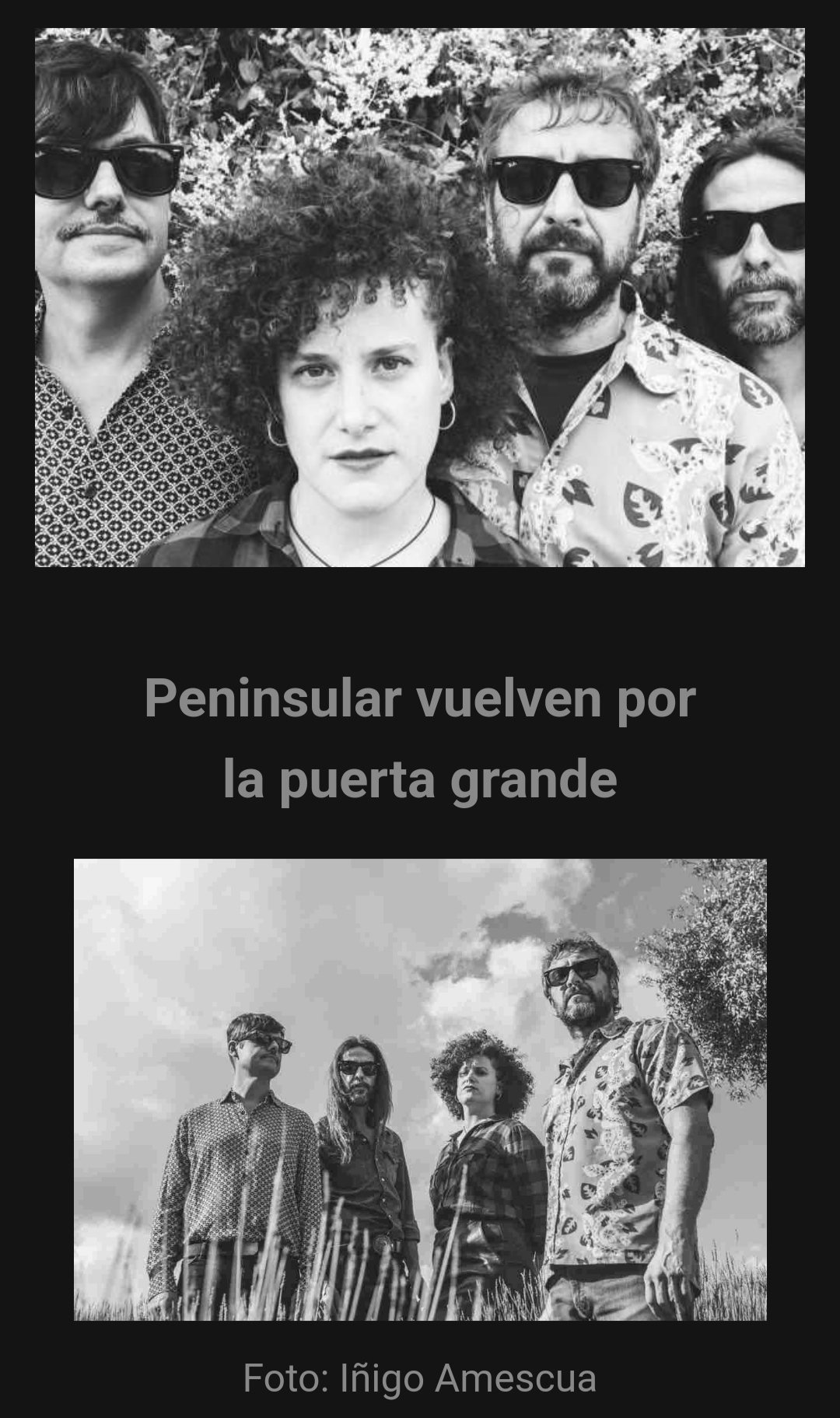 En ellos seguiremos viendo esos guiños al folk, a la música americana y al rock, pero también notaremos cómo sonidos más potentes afloran en el universo sonoro de Peninsular. La esencia es la misma pero la evolución continua de la banda nos permite augurar que será una de esas bandas que van a estar en boca de todos durante lo que resta de 2023. Este adelanto es solo la punta del iceberg de lo que se viene, tanto a nivel musical como a nivel de conciertos, por eso no dejéis de estar atentos a sus redes para no perderos ninguna de las novedades de Peninsular