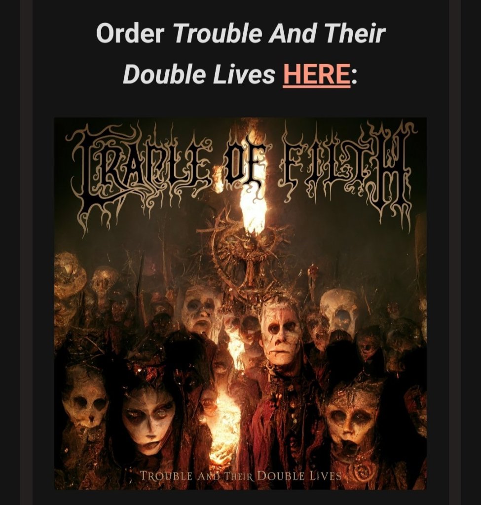 Para celebrar el lanzamiento del álbum de hoy, CRADLE OF FILTH ha revelado un nuevo video musical en vivo para una de las dos nuevas pistas de estudio cortadas de Trouble And Their Double Lives, titulada "Demon Prince Regent". sonido y sombríos plomos de guitarra ennegrecidos antes de llegar a un coro que rebota y golpea la cabeza, demostrando ser una continuación abrasadora del sencillo anterior de la banda, "She is a Fire".