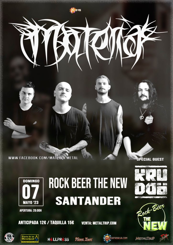 The Materia se embarcan esta primavera en una gira europea que tiene varias fechas en España, mientras anuncian un nuevo single, “Rain”, que se publicará el próximo 16 de marzo. En estos shows, The Materia mostrarán que son una de las bandas más prometedoras de la escena actual y que se están ganando a golpe de conciertos. Más de 150 a sus espaldas, donde ha compartido escenario con bandas como Metallica, Slayer, Megadeth, Anthrax y muchos más.
