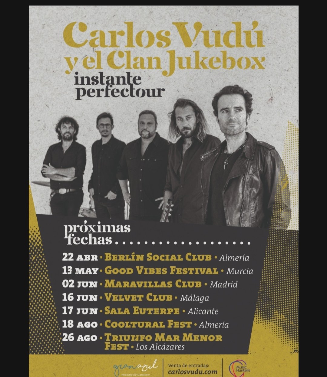Hace unos días os hablábamos de la llegada a la familia MusicHunters de Carlos Vudú y El Clan Jukebox, pues bien, hoy toca recibir como se merece al nuevo single de la banda. ¨Instante Perfecto¨ es la nueva perlita que nos presentan los murcianos, una canción que se encuentra desde hoy en todas las plataformas digitales y que llega con un potente videoclip a cargo de Willi Palazón (Rocket 26 Films).