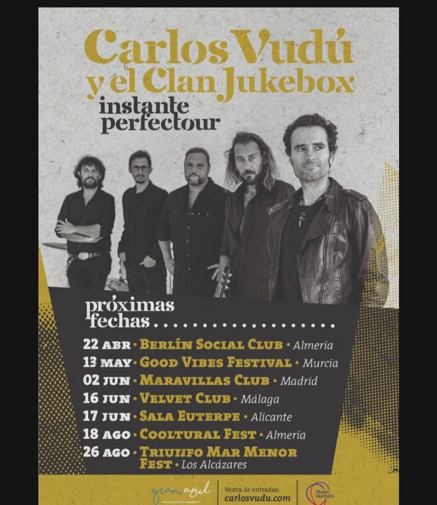 Carlos Vudú y El Clan Jukebox es un grupo grande, rodado, con recursos, buen repertorio y un frontman dominador. Una banda nacida en 2008 en Murcia con varios trabajos publicados y centenares de actuaciones que ya lo posicionan como un grupo consolidado de presente y futuro, la cual presenta una extensa gira de conciertos para este verano. Gira que les llevará a tocar tanto en salas cómo Maravillas Club (Madrid), donde estarán acompañados por un viejo conocido como es Petete Hernando, o la sala Euterpe de Alicante y en festivales como el Good Vibes de Murcia o el Cooltural Fest.