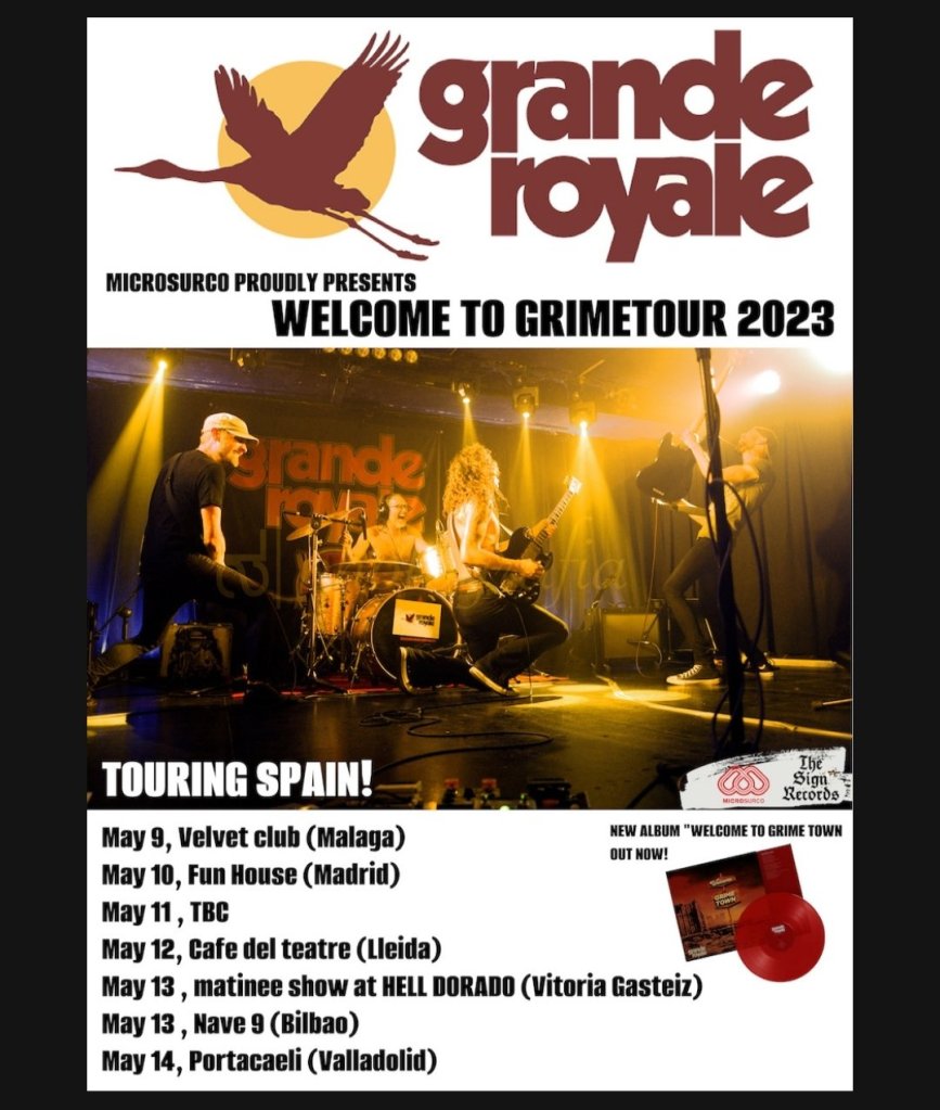 El grupo sueco de garage rock Grande Royale lanzó su sexto álbum de estudio «Welcome to Grime Town» a finales de marzo de 2023. Para celebrar el lanzamiento, el grupo se encuentra por España.