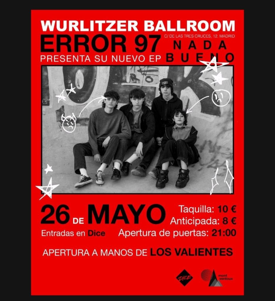 Este viernes, 26 de mayo, Los Valientes y Error 97 darán un concierto en la sala Wurlitzer Ballroom de Madrid. Los de Manresa estarán abriendo la velada para los jovencísimos Error 97, que presentarán su nuevo trabajo.