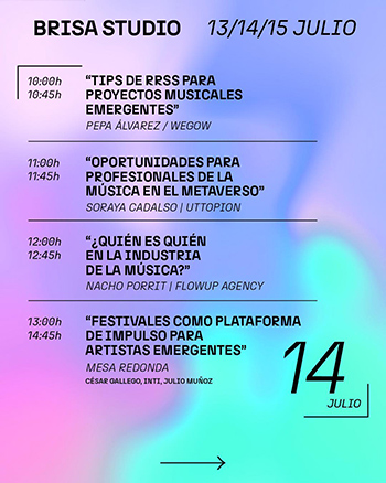 La música es la indudable protagonista de este encuentro y, por ello, cada jornada concluirá con conciertos en directo de bandas malagueñas y andaluzas programados desde ‘Brisa en tu barrio’, otra propuesta con la que dar soporte a bandas emergentes mientras se dinamizan los distritos de Málaga. Estos conciertos también serán retransmitidos en el metaverso Uttopion para que las bandas puedan llegar a un público mayor.