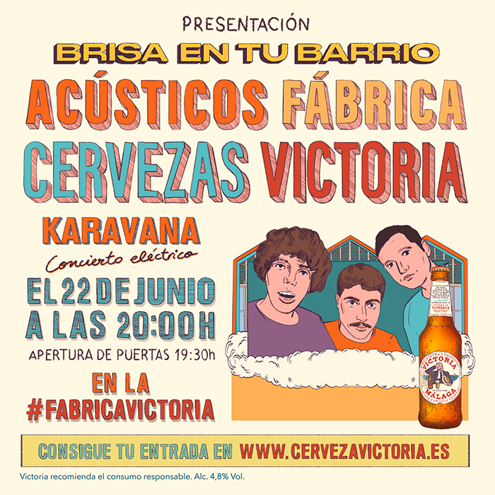 La fiesta de presentación de Brisa en tu Barrio, tendrá lugar el próximo 22 de junio en la Fábrica de Cervezas Victoria de Málaga. La banda encargada de poner sus “guitarras sucias y letras cursis” en un concierto electrizante será Karavana.