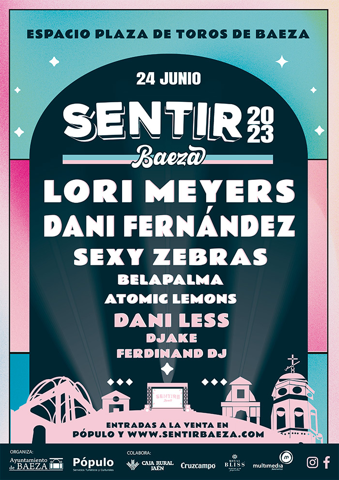 Entradas Aquí Baeza se prepara para celebrar un fin de semana de música, cultura y gastronomía. La primera edición del festival Sentir Baeza se celebrará el próximo sábado 24 de junio en la Plaza de Toros de la ciudad. Por el escenario pasarán, entre otros artistas, Lori Meyers, Dani Fernández o Sexy Zebras, y además, contará como grupos revelación con los madrileños Belapalma y los linarenses Atomic Lemons, completando el cartel los DJs: Dani Less, DJAKE y Ferdinand DJ.