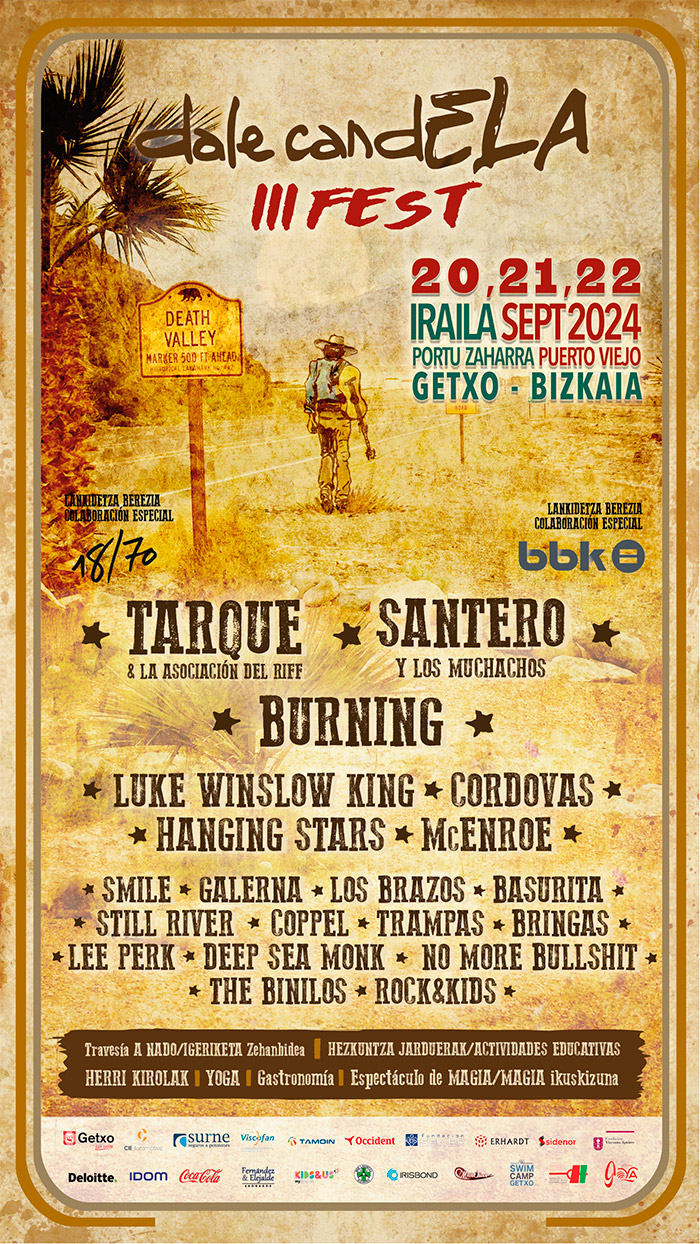 DalecandELA Fest III cuenta con la colaboración especial de BBK, 18/70 y Cie Automotive. Patrocinado por el Ayuntamiento Getxo, Surne, Viscofan, Tamoin, Occident, Fundación Sener, De Luque, Erhardt, Sidenor, Fundación Vizcaína Aguirre, Deloitte, Idom, Fernandez & Elejalde, Swim Camp Getxo ,Irisbond, DYA, Yoga Norte, el Mago Oliver y Kids & Us.