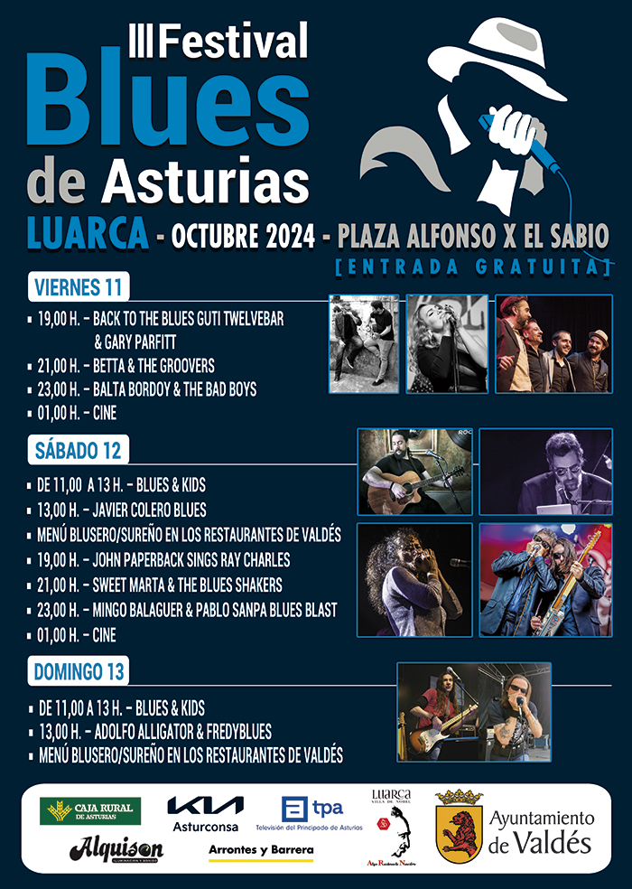 Del 11 al 13 de octubre en Luarca Conciertos gratuitos, cine, gastronomía, talleres musicales para los más pequeños y en definitiva mucha música; esta es la propuesta para la tercera edición del Festival de Blues de Asturias que se celebrará del 11 al 13 de octubre en Luarca.