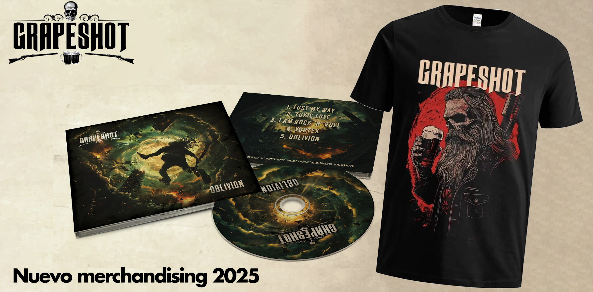 Hace más de tres años que lanzaron su último larga duración ‘Suckcess’ y ahora regresan con nueva formación y un buen puñado de canciones en forma de EP llamado ‘Oblivion’, con el que quieren reivindicar su lugar en la escena metal nacional y demostrar que siguen estando en forma y gozando de una creatividad en estado de gracia, pues Grapeshot es una banda que no ha dejado de patear escenarios y de tocar allá donde les dejan.