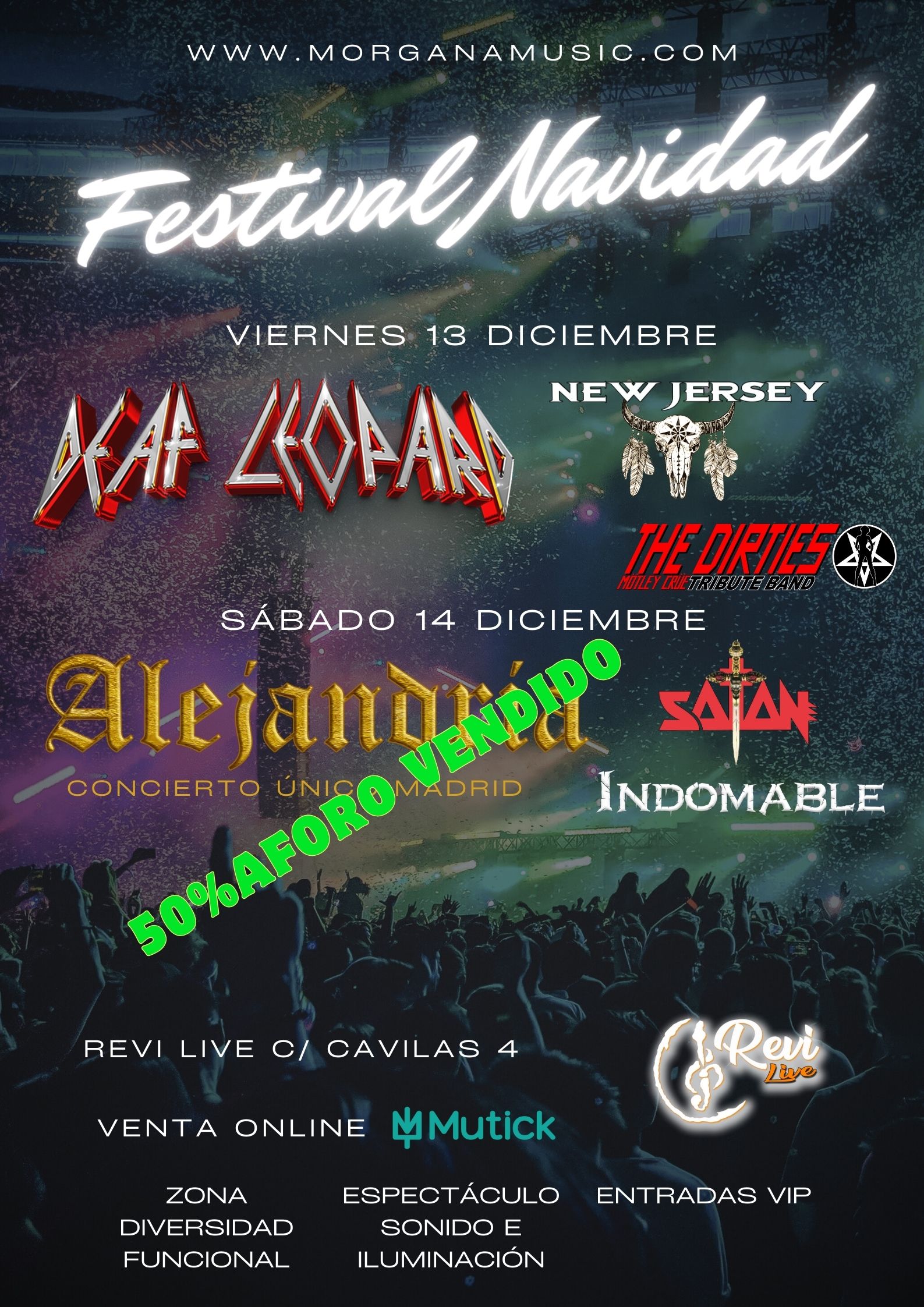 «Morgana Events anuncia su cartel definitivo del Festival de Navidad que cada año reúne en Revi Live Madrid a todos los seguidores de las grandes canciones del Rock de todos los tiempos.