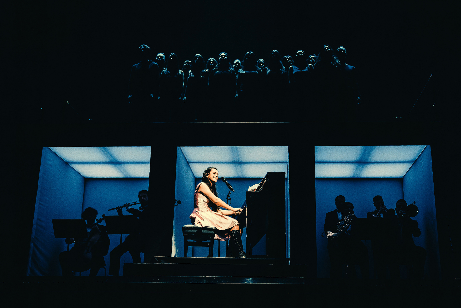 Un musical de cuatro actos donde la música y la interpretación brillan en cada minuto con su nueva banda, un grupo de multiinstrumentistas que convierte el escenario en un parque de atracciones: suenan violines, percusiones, guitarras eléctricas y acústicas, una orquesta entera de cinco personas a las que se suma por momentos el coro, un cuarteto de cuerdas y vientos y la presencia de Amaia llenándolo todo, acompañada por hasta 29 músicos, con invitados especiales como Aitana y Alizzz y también sola musicando poemas de Lorca al piano y mezclándolo con la cultura popular de hoy: desde Los Planetas a Papá Levante. Sonaría chocante si no fuese Amaia quien lo canta. La voz de una generación que necesitaba una estrella del pop como ella: única, imaginativa y en estado de gracia, confirmándose como lo más interesante que le está pasando al pop español ahora mismo.