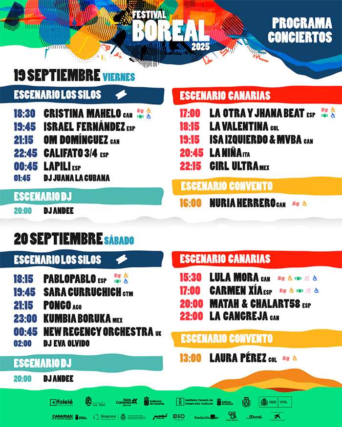 El Festival Boreal está a solo unos días de abrir sus puertas, y la emoción se siente en cada rincón de Los Silos [Tenerife]. Del 17 al 21 de septiembre, este municipio se transformará en un epicentro vibrante de cultura y sostenibilidad con la llegada de la 18ª edición del festival. Reconocido por su profundo compromiso social y medioambiental, el Boreal ha desvelado por fin su programa completo, que ya puede consultarse en su web y redes sociales. El alma del festival reside en su impresionante cartel musical, con 21 artistas y bandas que aterrizan desde Europa, América, África y Asia para fusionar sus sonidos globales con el inconfundible talento canario. Figuras internacionales como la angoleña Pongo, la guatemalteca Sara Curruchich, las mexicanas Girl Ultra, la italiana La Niña y las colombianas Laura Pérez y La Valentina compartirán escenario con bandas de la talla de Kumbia Boruka y New Regency Orchestra. El panorama nacional no se queda atrás, con el aclamado cantaor Israel Fernández, Califato 3/4, Lapili, La Otra & Jhana Beat, Pablopablo, Carmen Xía y Matah & Chalart58. El talento local está representado por Cristina Mahelo, Lula Mora, Isa Izquierdo & MVBA, OM Domínguez y Nuria Herrero.